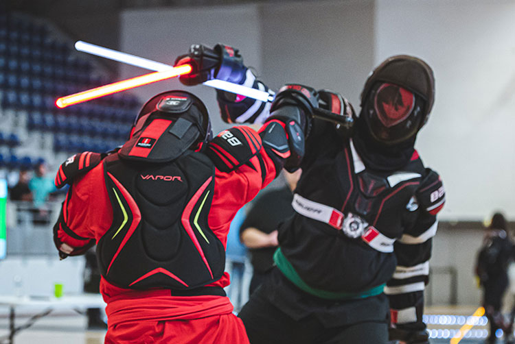 Les cours s’adressent aux débutants et aux confirmés. Discipline hybride, le sabre laser se pratique avec un équipement de protection de hockey et un masque d’escrime, sans oublier la fameuse épée lumineuse qui résiste aux chocs. Le tout est fourni par le club.
